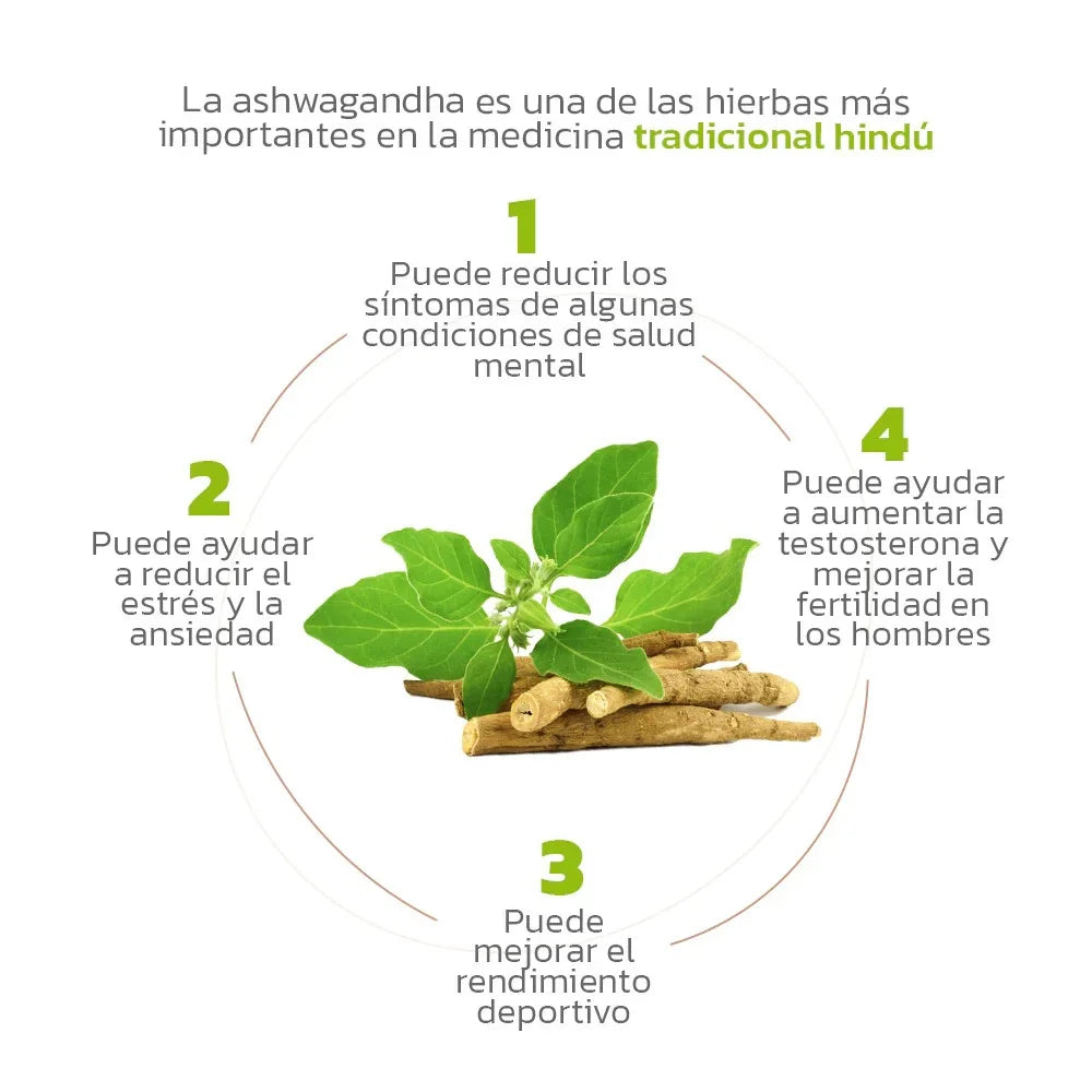 Estudios indican que Ashwagandha reduce hasta un 30% los niveles de cortisol, la hormona del estrés, ayudándote a sentirte más relajado y en control.