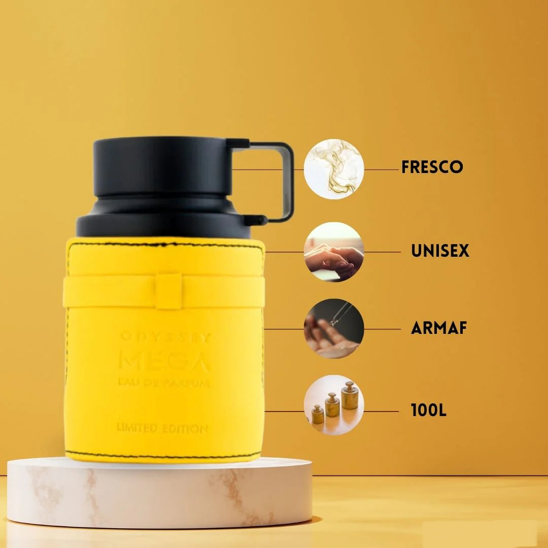 Mega tiene un aroma sofisticado, amaderado y cálido. Sus notas principales incluyen sándalo, cedro, cardamomo y cuero, con un fondo cremoso y ligeramente ahumado. Es un perfume unisex con personalidad, perfecto para quienes quieren destacar sin esfuerzo.